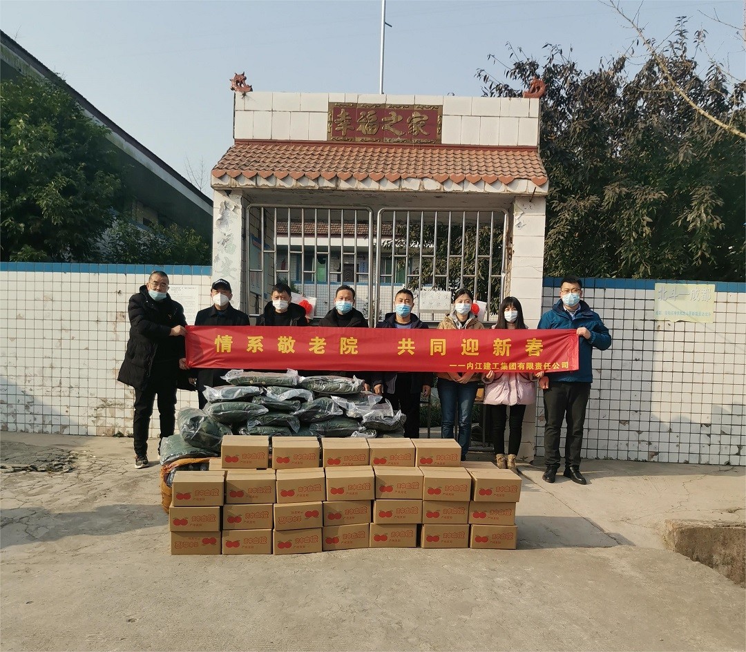 兔年新春即將到來之際,為傳承尊老、敬老、愛老、助老的傳統(tǒng)美德,提升敬老院老人的幸福感。1月19日上午,受內(nèi)江建工集團(tuán)黨委委托,建工集團(tuán)黨群工作部一行到對口幫扶的資中縣發(fā)輪鎮(zhèn)敬老院開展“情系敬老院 共同迎新春”春節(jié)慰問活動。為老人們送去44件軍大衣、44箱共計440斤新鮮水果,價值7600余元的春節(jié)慰問品,并向老人們致以新春的美好祝福,讓老人們切身感受到內(nèi)江建工集團(tuán)黨委的關(guān)懷和溫暖。