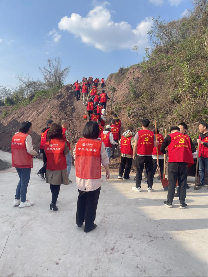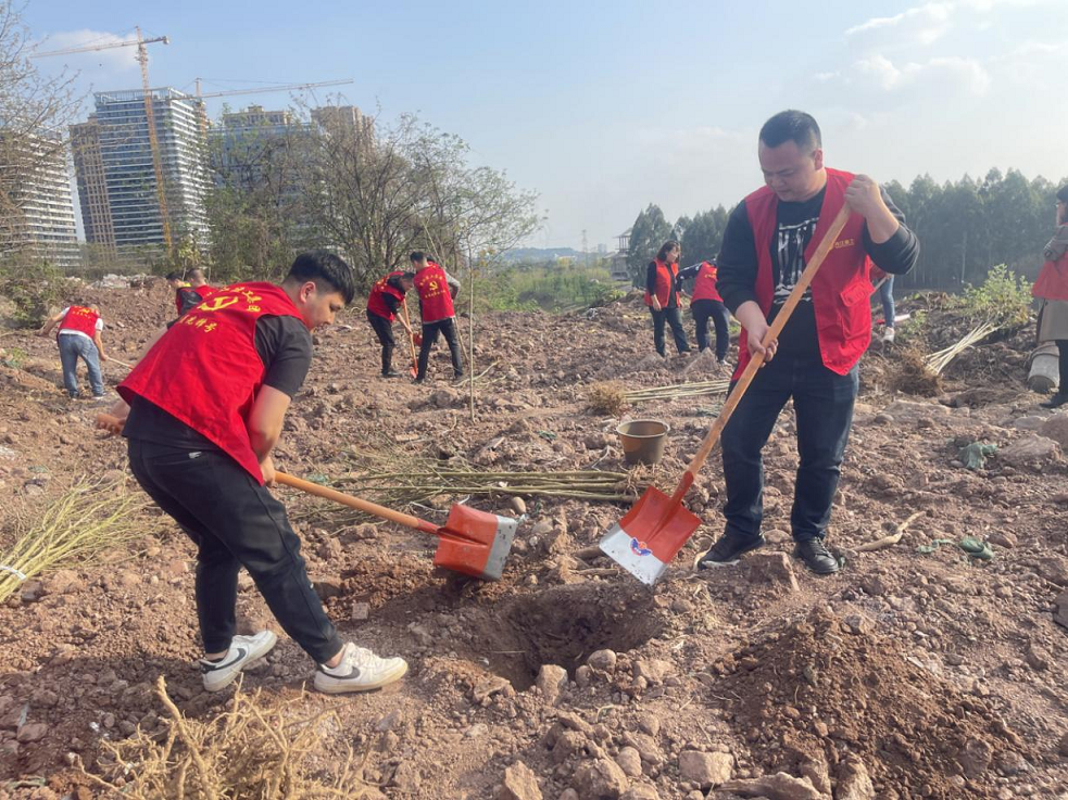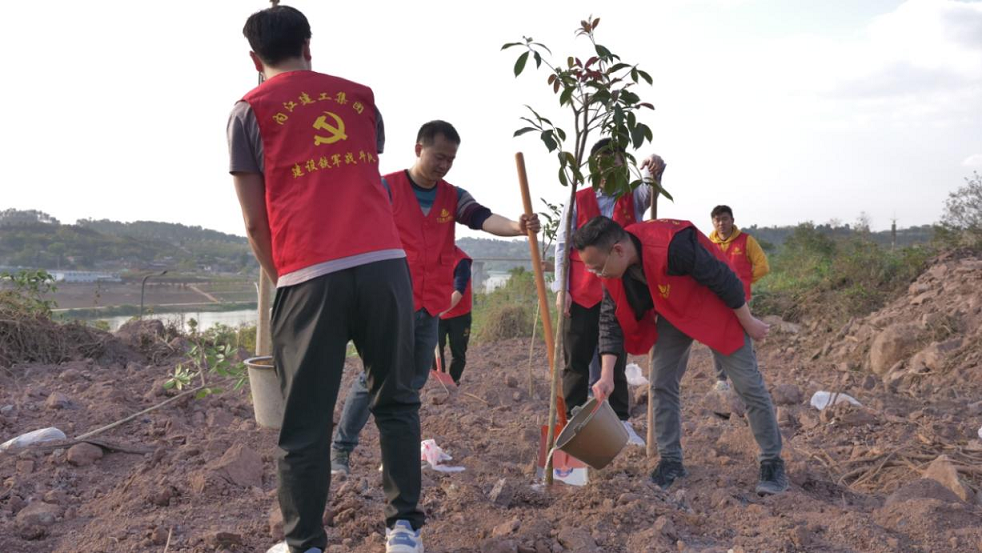 為深入踐行習(xí)近平生態(tài)文明思想,牢固樹(shù)立和踐行綠水青山就是金山銀山的理念,打造“筑魂聚力”黨建品牌,狠抓落實(shí)全力“融合”黨建?項(xiàng)目建設(shè),構(gòu)筑“融合綠”戰(zhàn)斗堡壘,3月30日下午5:00,建設(shè)分公司黨支部與中國(guó)移動(dòng)通信集團(tuán)四川有限公司內(nèi)江分公司黨委辦公室(黨群工作部)黨支部結(jié)對(duì)共建,開(kāi)展了“黨建引領(lǐng)守初心,攜手共進(jìn)獻(xiàn)綠色”為主題的黨建品牌和項(xiàng)目融合植樹(shù)活動(dòng),組織了建設(shè)鐵軍戰(zhàn)斗隊(duì)、預(yù)備黨員、入黨申請(qǐng)人等40余人在大劇院停車場(chǎng)項(xiàng)目?jī)?nèi)種植了銀杏、桂花、桃花、柑橘、李子等共計(jì)100余株樹(shù)苗。