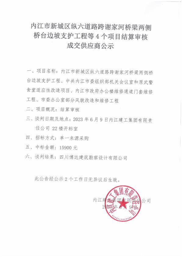 三、談判日期及地點(diǎn):2023年6月9日內(nèi)江建工集團(tuán)有限責(zé)任公司 22樓開標(biāo)室