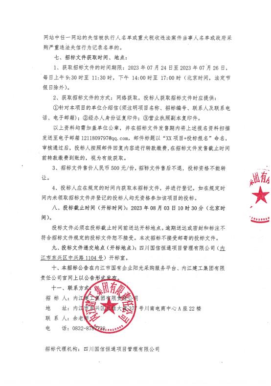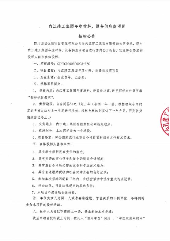 內(nèi)江建工集團(tuán)年度材料、設(shè)備供應(yīng)商項(xiàng)目招標(biāo)公告