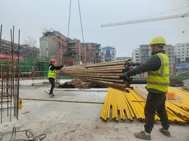 作為內(nèi)江市重點項目之一的內(nèi)江市中心城區(qū)四方塊棚戶區(qū)改造建設(shè)項目(一期)現(xiàn)場,塔吊林立、機器轟鳴,一線工人們干勁十足,綁扎鋼筋、運送材料、制作模板……該項目規(guī)劃占地面積30余畝,總建筑面積近5萬平方米,將新建13棟商業(yè)單體,規(guī)劃機動車及非機動車停車位1300余個,項目預(yù)計在2026年8月實現(xiàn)整體竣工驗收。改造后的“四方塊”定位時尚融合文旅商業(yè)街,將融入內(nèi)江本土文化,保留和傳承內(nèi)江“書畫文化”“甜城文化”“建筑文化”等元素,打造集文創(chuàng)體驗、品牌零售、親子休閑、特色美食于一體的新地標(biāo),為市民帶來更加美好的城市生活體驗,成為內(nèi)江市市中區(qū)又一張靚麗的城市名片。